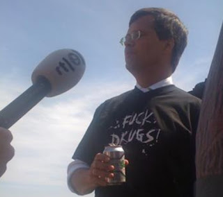 De Nederlandse blog Frontaal Naakt (Jona Lendering) pakt de koe bij de horens. Eerste minister J.P. Balkenende vertoont zich met een shirt waarop staat "F*ck Drugs". De goede man begrijpt niet, dat in de Engelstalige wereld zoiets "not done" is. Althans niet door een prime minister. En zeker niet, als hij daarbij ook nog een glas bier in de hand houdt.